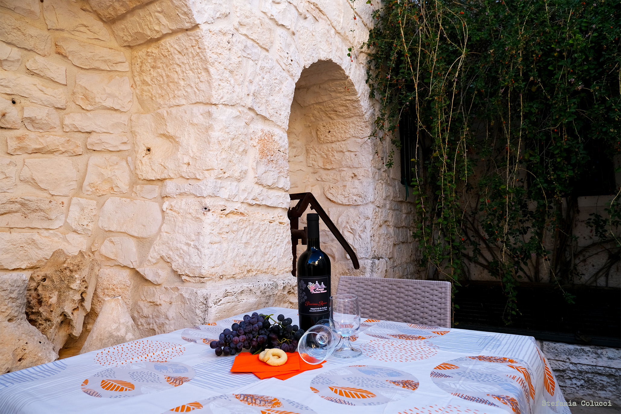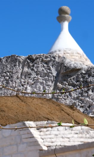 La Valle d’Itria é il fazzoletto di Murgia che comprende per intero i territori di Locorotondo, Martina Franca e Cisternino ed include parte dell’agro di Alberobello, Ostuni, Ceglie Messapica e Fasano. Cosa rende particolare la Valle d’Itria ? La pietra calcarea tipica della Murgia qui si declina in forme svariate, la ritroviamo nei muretti a secco che costeggiano strade e proprietá, negli jazzi, la vediamo plasmare casedde, trulli, cummerse, lamie, e Masserie. Prodotti tipici della zona sono l’olio d’oliva, che serve da base per squisite preparazioni quali frise, taralli, orecchiette con le cime di rapa o con caciocavallo e pomodoro fresco e il vino, dal corposo primitivo al fruttato Verdeca.
