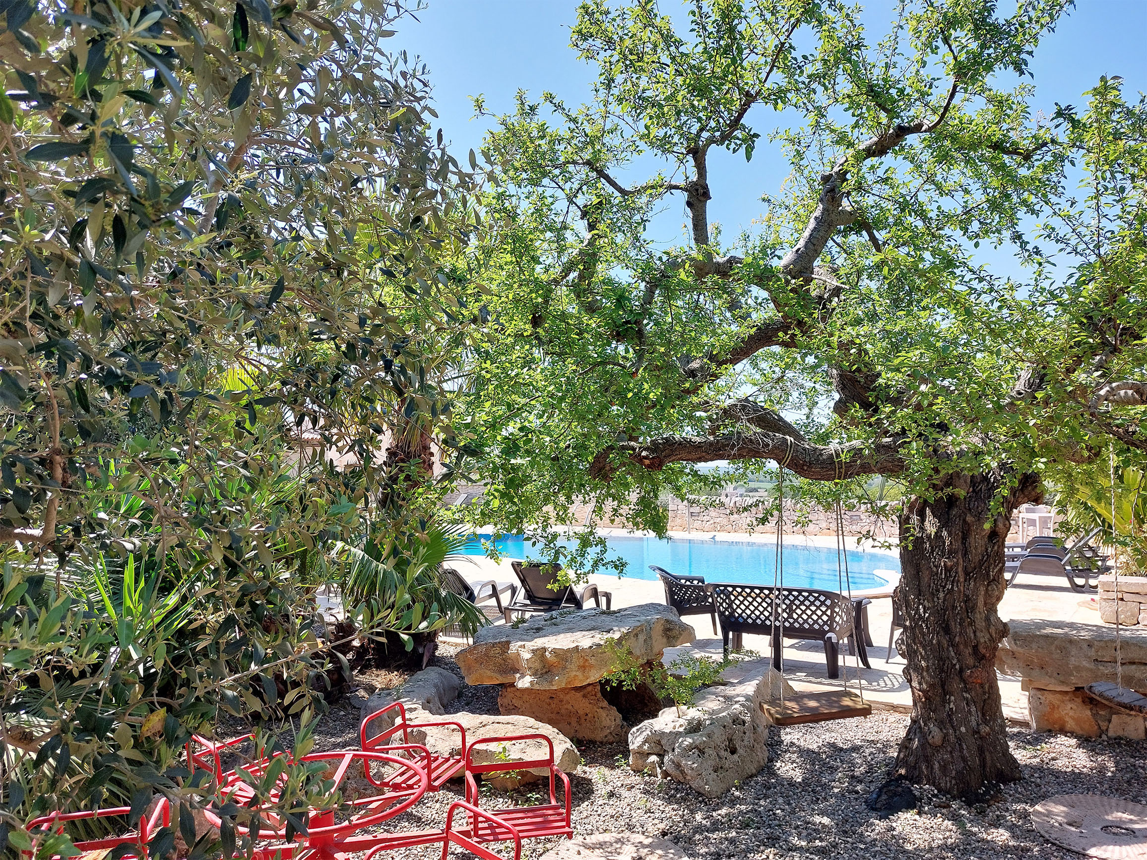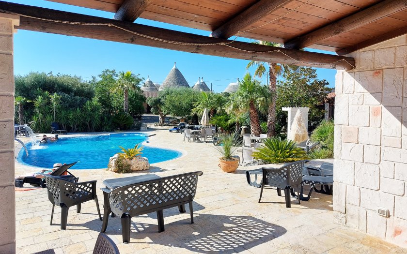 La nostra Masseria é perfetta per chi cerca relax e comfort. La struttura conta trulli e casette in pietra, una piscina ad uso esclusivo degli ospiti, un ampio giardino, due barbecue esterni e un parcheggio. La prima colazione puó essere gustata a bordo piscina o nella sala adibita e vanta prodotti locali e freschi.